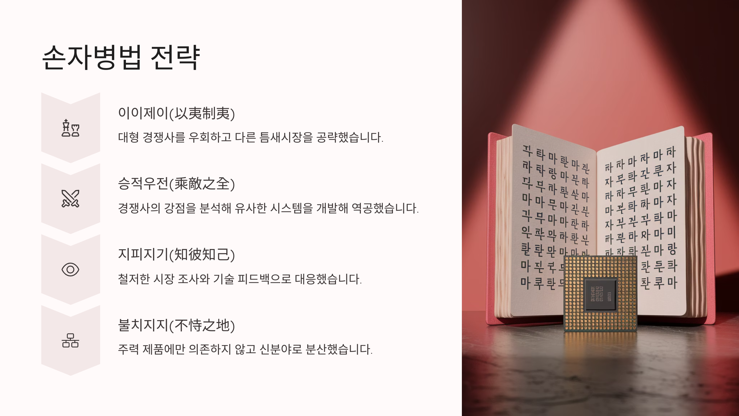 - 지피지기(知彼知己): 철저한 시장 조사와 기술 피드백으로 대응